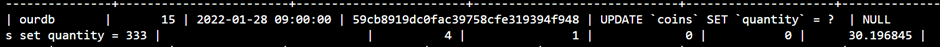 MySQL [ourdb]> SELECT * FROM mysql.query_store where query_id = 15;